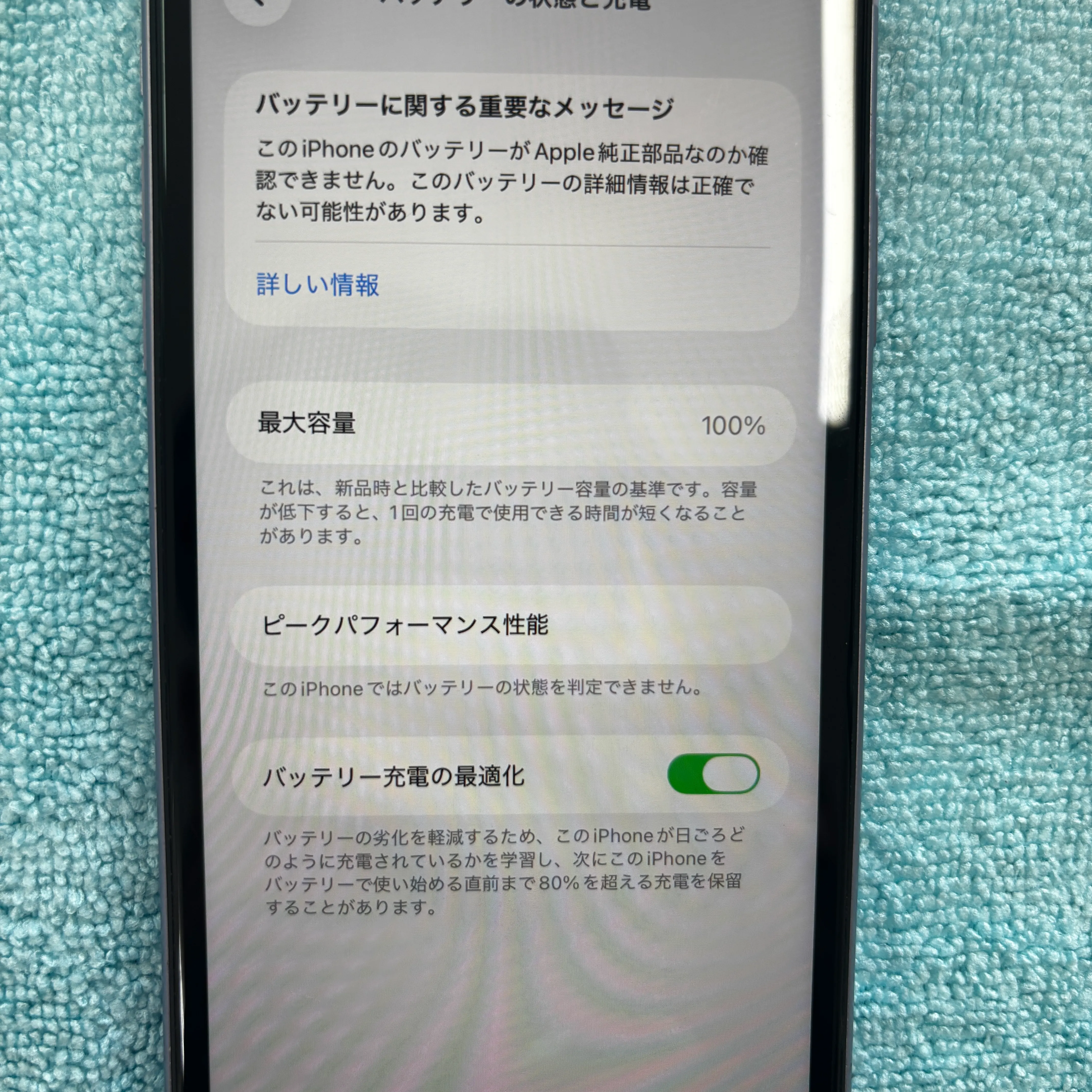 元々は100%ですので、バッテリー最大容量が下がっていることがわかります。