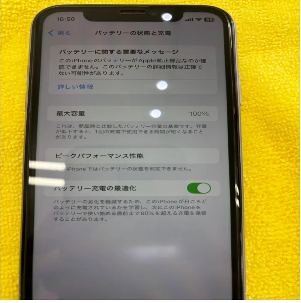 p>今回の場合ですとバッテリーを交換して、無事バッテリーの最大容量が100%になりました。
