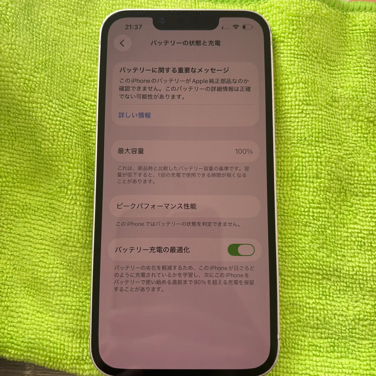 元々は100%ですので、バッテリー最大容量が下がっていることがわかります。